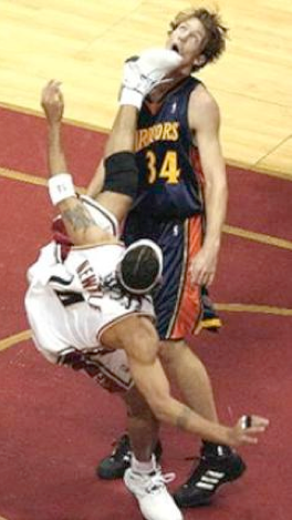 I lived in Durham, NC when Mike was going to college at Duke and I frequently saw him around town. One time I saw Mike at the Macaroni Grille. Another time I saw Mike at the movie theater. And yet, the thing that made the biggest impression on me was this picture of Mike getting kicked in the face by Ira Newble.
